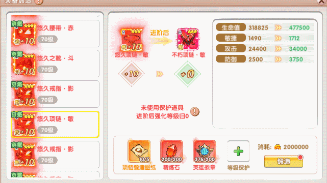 3. 新增功能“锻造”,可以将英雄系列装备打造成全新系列“不朽”系列套装。